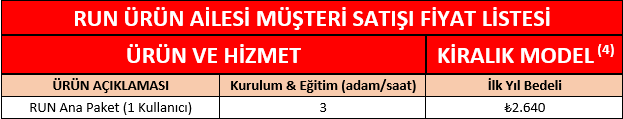RUN FİYAT LİSTESİ